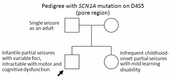 - Fukuma G, Oguni H, Shirasaka Y, Watanabe K, Miyajima T, Yasumoto S, Ohfu M, Inoue T, Watanachai A, Kira R, Matsuo M, Muranaka H, Sofue F, Zhang B, Kaneko S, Mitsudome A, Hirose S. Mutations of neuronal voltage-gated Na+ channel alpha 1 subunit gene SCN1A in core severe myoclonic epilepsy in infancy (SMEI) and in borderline SMEI (SMEB). Epilepsia. 2004;45:140 - 8. [PubMed: 14738421]