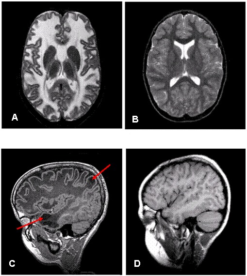 - MLC2B型患儿1岁以内的MRI同上所述,但随后明显好转。部分患儿MRI可在数年内恢复正常,但部分患儿可遗留微小的额叶、颞叶皮层下白质异常以及前颞叶的囊肿。
